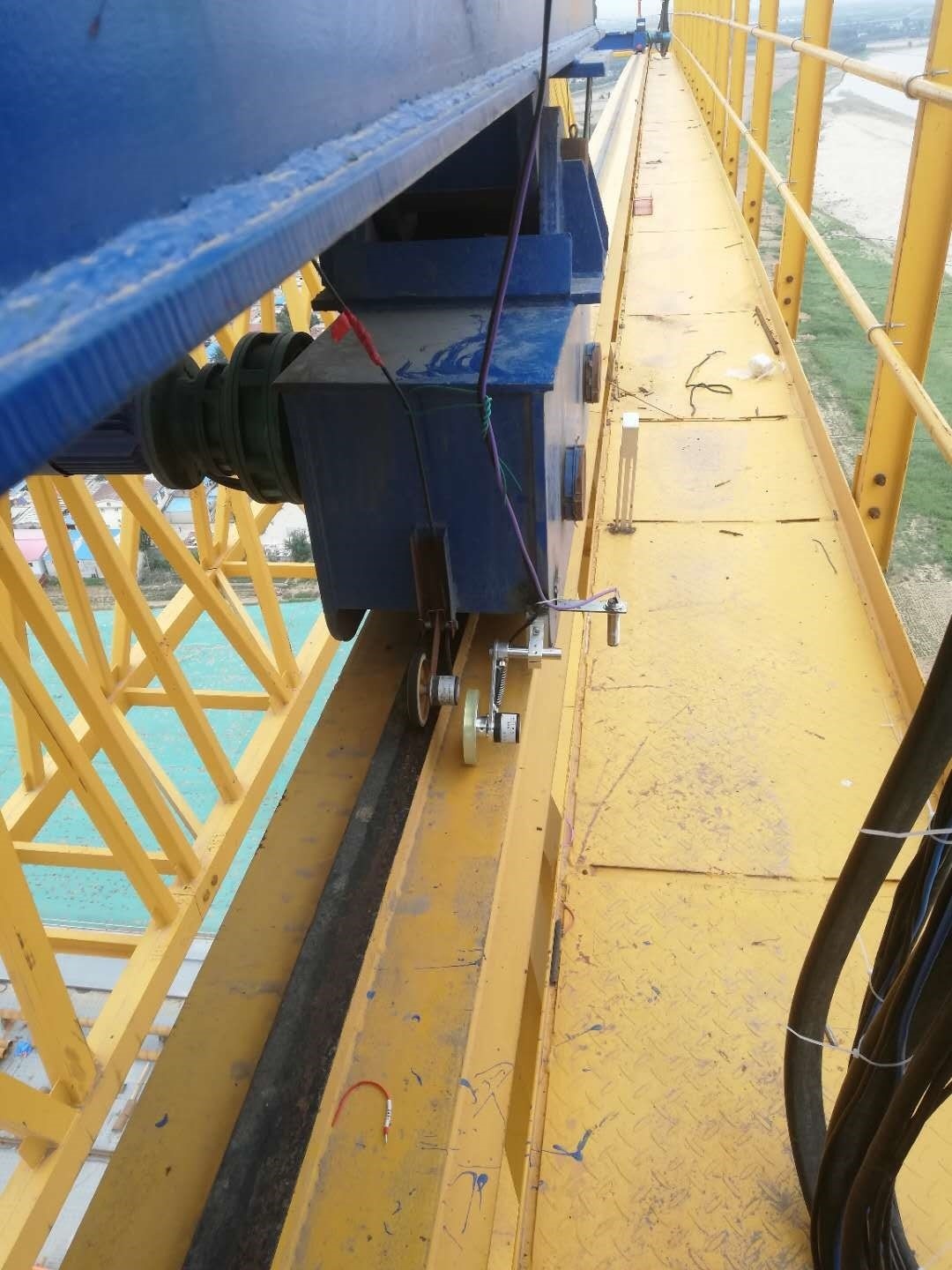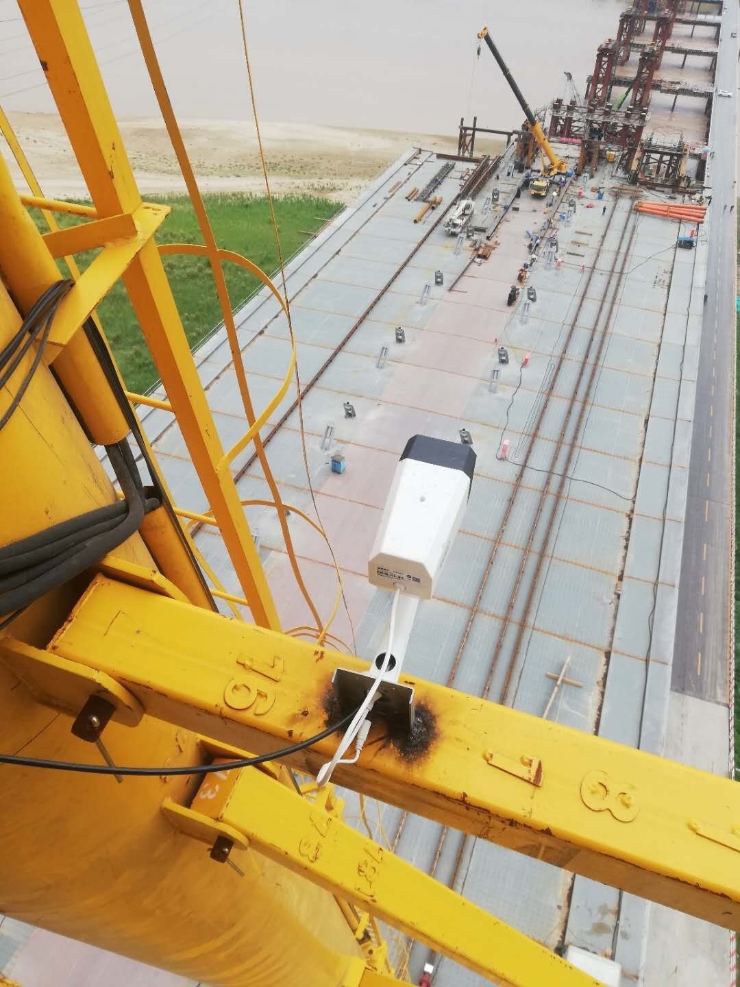 3. 龍門吊高度53米,跨度32米,為齊魯黃河大橋施工主要裝備,設備架設在黃河橋上,設備最高處距離黃河水面近80米,設備安全運行,對項目進度起到至關重要的作用,鄭州愷德爾遠程監控系統的安裝,為該設備正常運行提供了可靠保障。